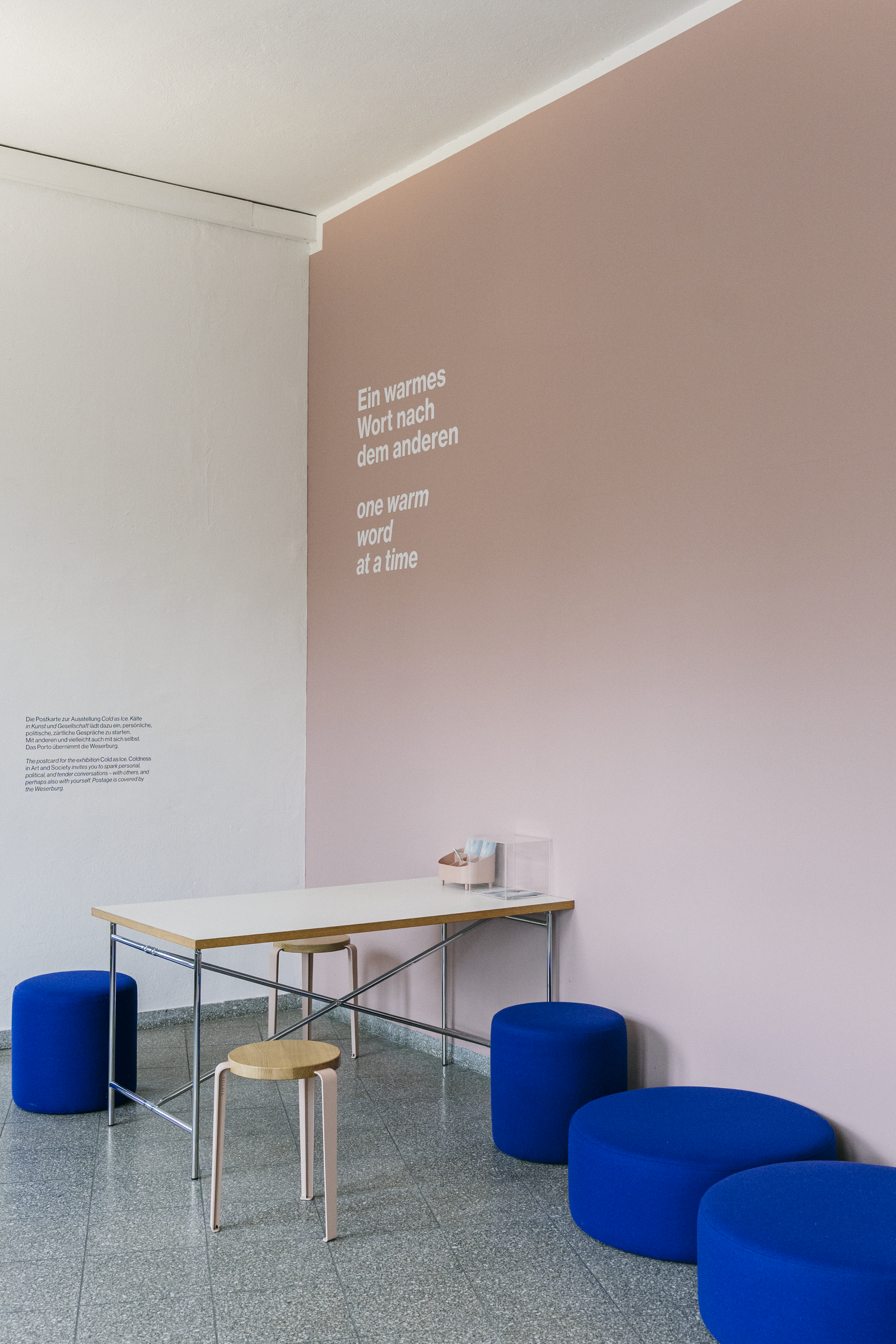 Wir bei POPO glauben, dass gute Gestaltung den Dialog zwischen Mensch und Kunst unterstützt. Wenn sich Design und Kunst harmonisch ergänzen, entsteht eine Atmosphäre, in der man sich gerne aufhält. Es ist diese feine Balance zwischen Zurückhaltung und Ausdruckskraft, die wir in die Weserburg bringen wollten.